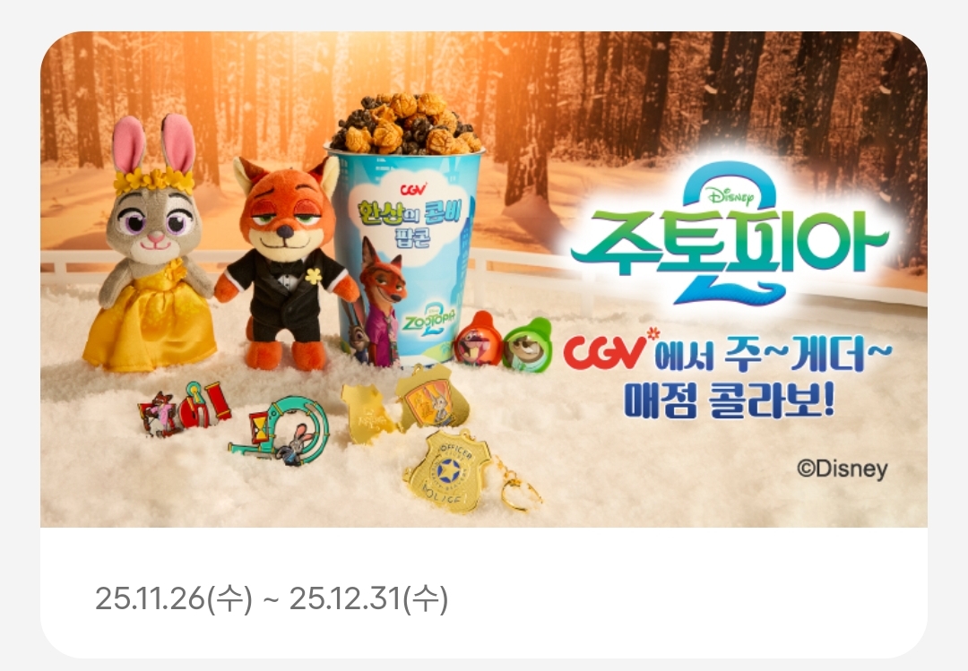 CGV 주토피아2 굿즈 는 12월 31일까지 판매한대요